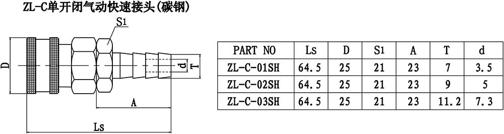 ZL-C單開閉氣動快速接頭(碳鋼)